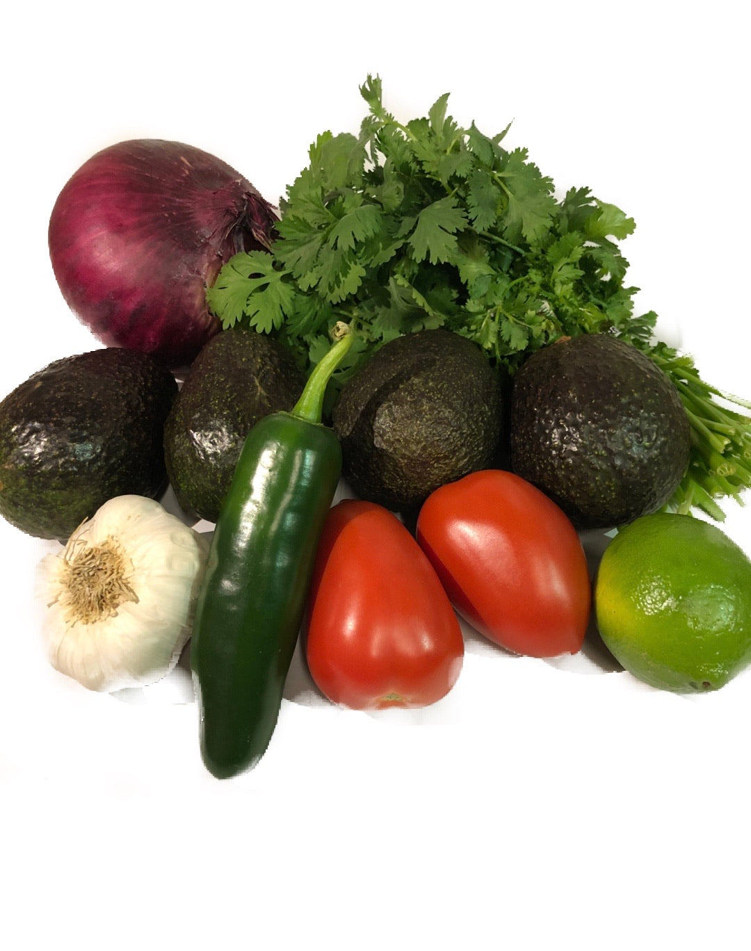 4 avocados, 2 roma tomatoes, 1 lime, 1 garlic, 1 red onion, 1 jalapeno, and 1 cilantro